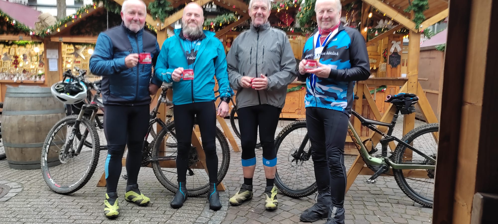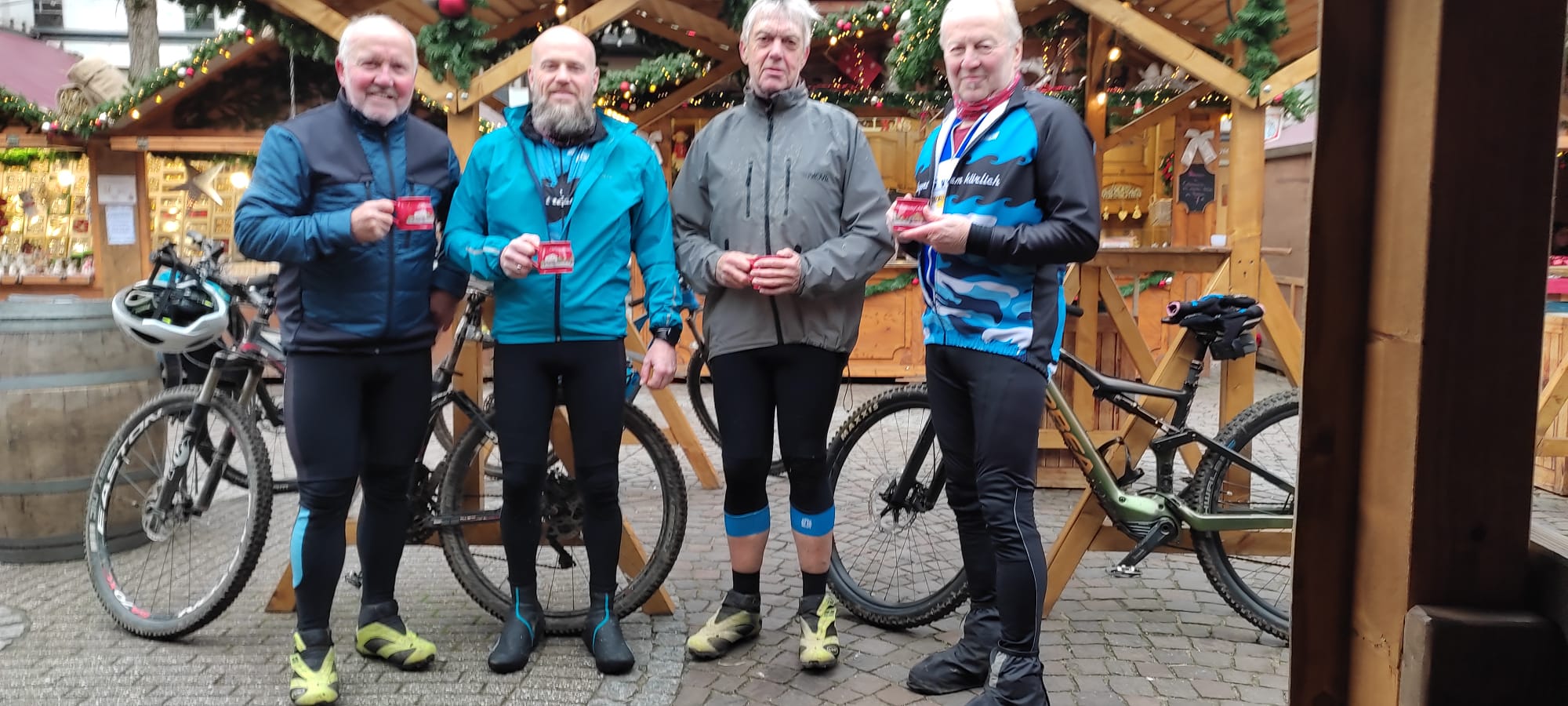 Auch in diesem Jahr starteten die Mountainbiker der Radsport-Abteilung des TV Kärlich wieder ihre Weihnachtsmarkt-Pokal-Serie. Hierbei wurden in der besinnlichen Zeit die Weihnachtsmärkte an Samstagen oder Sonntagen in der näheren Umgebung angefahren. Jeweils nach einer 2- bis 3-stündigen Mountainbike-Tour findet dann der Abschluss auf einem der Weihnachtsmärkte statt. Ziele bisher waren Nickenich und Weißenthurm, weitere Orte folgen an den nächsten Wochenenden vsl. Kärlich, Andernach oder in Neuwied. Den Abschluss einer oft matschigen Tour mit einem leckeren Glühwein und einer Bratwurst zu begehen macht Lust auf den nächsten Besuch. |