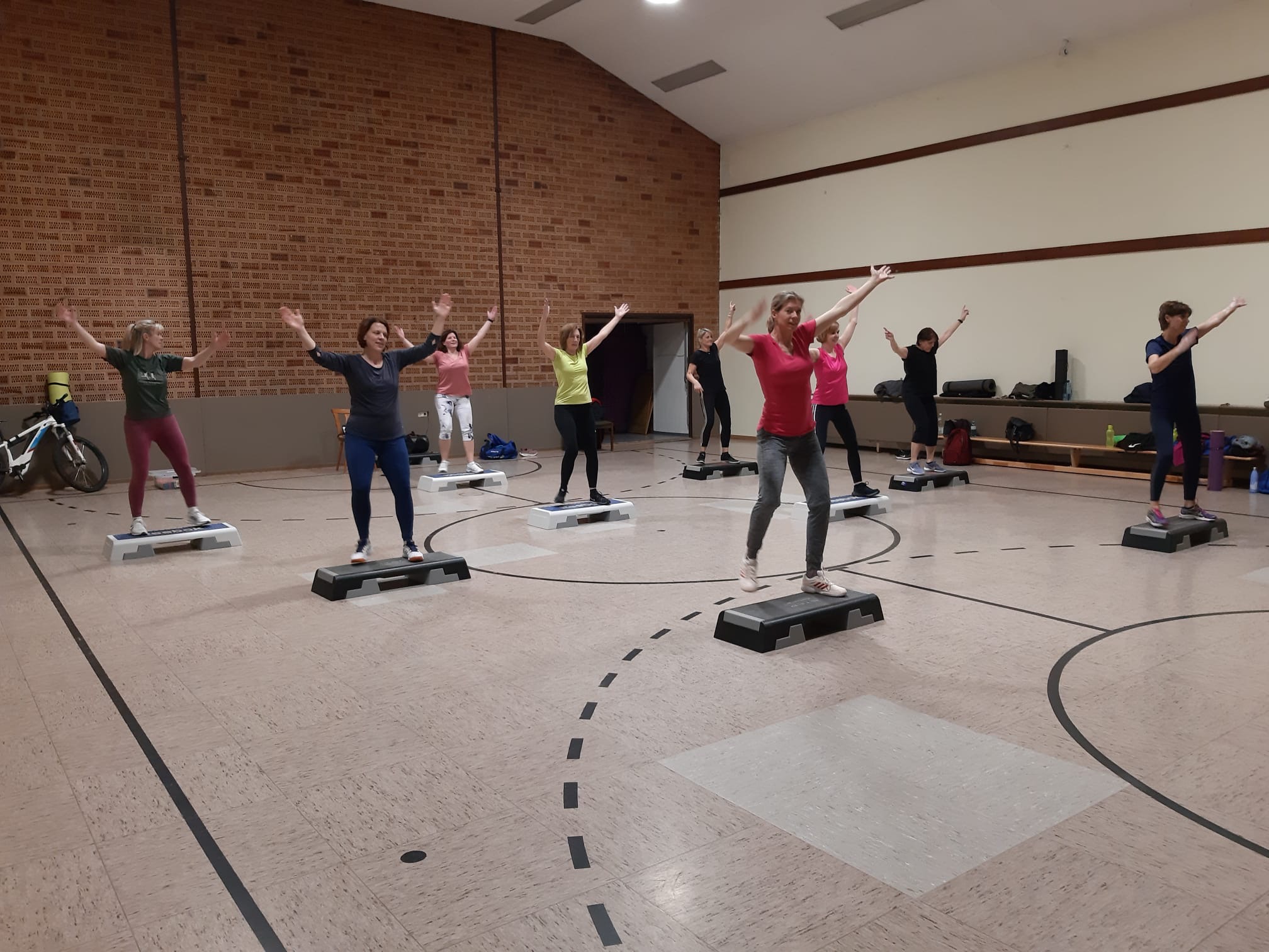 Du möchtest deinen Körper in Schwung bringen, ohne dabei deine Gelenke zu strapazieren? Dann ist Step Aerobic beim TV Kärlich genau das Richtige für dich! Step Aerobic ist mehr als nur ein Herz- und Kreislauftraining. Es ist eine kraftvolle Kombination aus Bewegung, Musik und Spaß, die deinen gesamten Körper stärkt und deine Fitness auf ein neues Level hebt. Auf, am und um den Step herum werden Grundschritte zu Choreografien kombiniert – begleitet von aktuellen Chartmusik-Hits. Egal, ob du Anfänger bist oder bereits Erfahrung hast, bei uns findest du die passende Herausforderung. Für Einsteiger sind die Grundschritte leicht nachvollziehbar, während Fortgeschrittene sich an komplexeren Schrittfolgen, Drehungen und tänzerischen Elementen versuchen können. Dabei verbessern wir nicht nur deine Ausdauer und Koordination, sondern aktivieren auch die Fettverbrennung und stärken gezielt deine Beine, Gesäß- und Armmuskulatur. Unsere Trainingsstunden dauern 60 Minuten und beinhalten sowohl Aufwärm- als auch Stretching-Phasen, um deinen Körper optimal auf das Training vorzubereiten und ihn anschließend zu entspannen. Das Beste daran? Unsere zertifizierte Übungsleiterin Bettina arbeitet gemeinsam mit dir an deiner Fitness, damit du jede Minute des Trainings genießen kannst. Unser Step Aerobic Training findet jeden Dienstag von 19 bis 20 Uhr in der Alten Gemeindehalle (Burgstraße in Kärlich) statt. Wir stellen die Step-Bretter zur Verfügung, du brauchst nur feste Hallenschuhe und etwas zu trinken mitzubringen. Interessiert? Komm zum Schnuppertraining und erlebe die Faszination von Step Aerobic! Weitere Informationen findest du auch hier auf unserer Website. Starte noch heute deine Reise zu einem fitten und dynamischen Lebensstil – wir freuen uns auf dich!