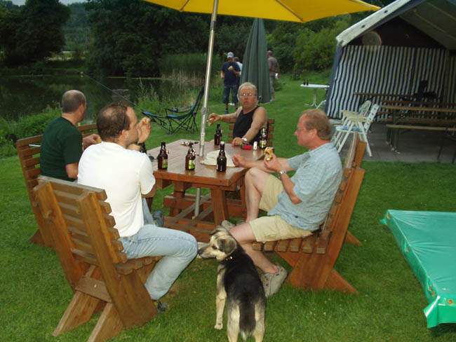 Als Ausgleich zum Radfahren trafen wir uns im Juni zum Angeln am Lukasweiher. Zwar konnte nicht jeder einen Fisch fangen, (was aber NICHT an der Ausrüstung gelegen haben kann ;-) ), aber zur Not tut's ja auch eine Schildkröte, oder?
